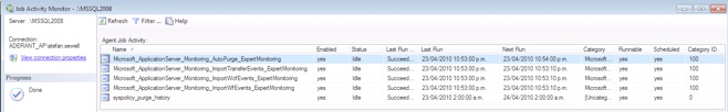 There are four Jobs managed by the SQL Agent that are used to populate and manage the tables in the monitoring database. These are: