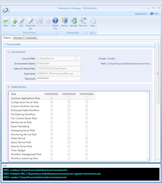 The definition of the system would include a list of the servers they wanted to use and the roles they wanted the server to perform. Windows Server has the concept of a role, when setting up a new installation you choose what you want the server to do; is it the active directory controller, is it an application server, is it a file server, is it a web server? Depending upon which roles you allocate, different features are available. Some roles are incompatible on the same server, some roles are dependent upon other roles being satisfied by other servers. The role concept was something we also required as we had a number of different server components: configuration, security, workflow, messaging and application services. Each component was a unit of deployment, a server could be allocated the workflow role for example, which contained a number of services such as instance management and task management . We did not want to have to walk / remote onto to each server and perform an installation, we wanted a central process co-ordinate and manage the installation across all of the servers.