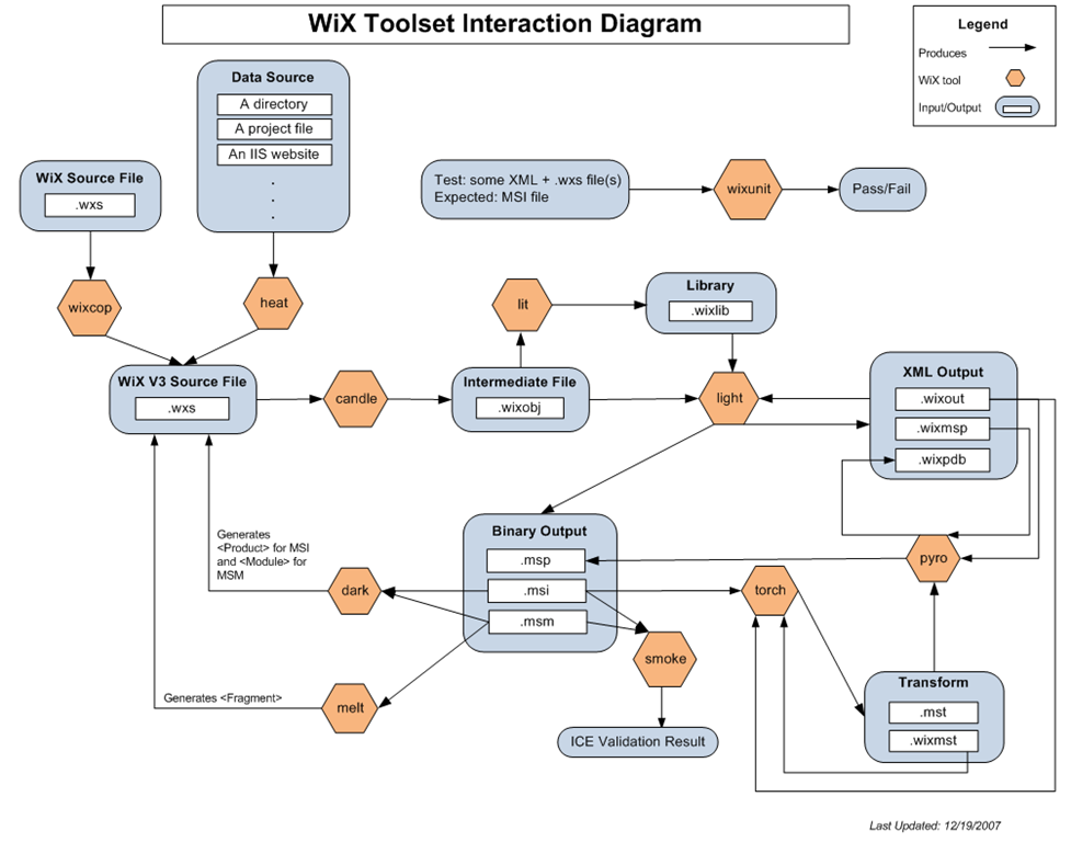 The WiX toolset is summarized concisely by the following diagram (taken from http://wix.sourceforge.net/coretoolset.html)