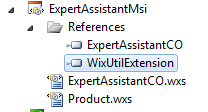 Of course, the out-of-the-box experience can only go so far and so the generated WXS likely needs to be augmented. Our approach was to use HEAT (via the Harvest option) to generate the initial WXS files and then the generation was disabled. The ExpertAssistantCO.wxs file was moved into the project for manual editing and the product.wxs file contains the bulk of the custom code.