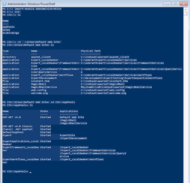With the files and directories in place, we now need to host the service in IIS. To do this we need to use the PowerShell module for IIS: